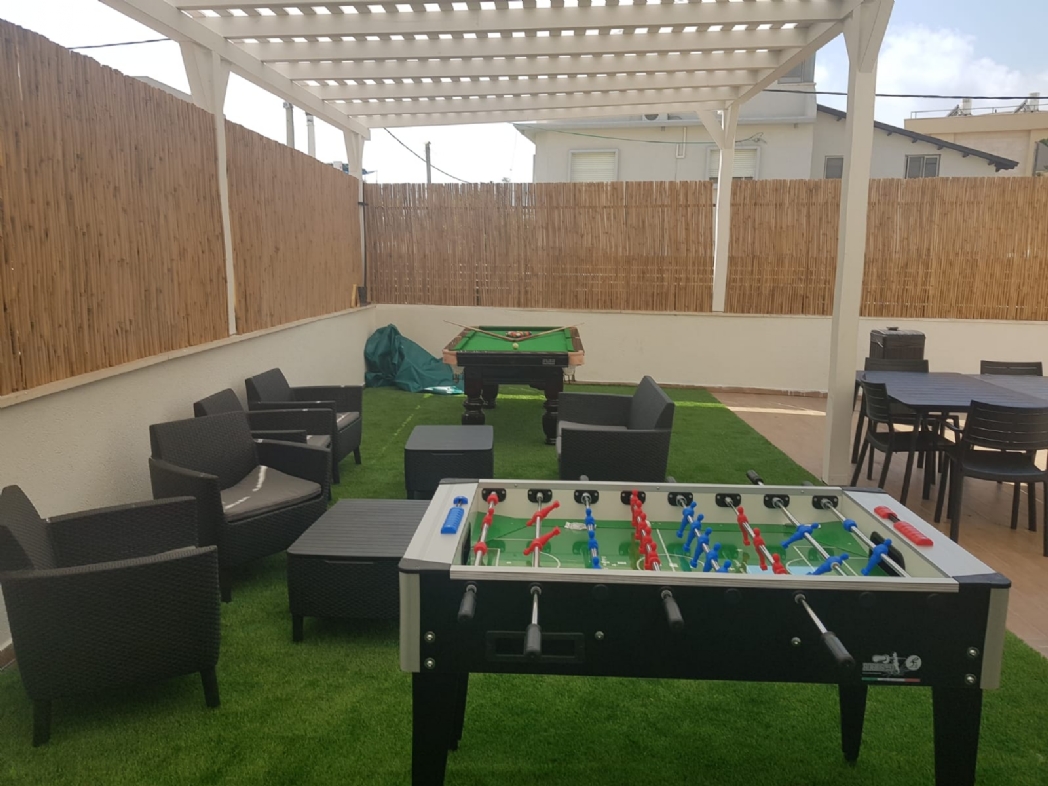 בחצר המפנקת ממתינה לכם בריכת שחייה בנויה, פינות ישיבה מוצלות, ברביקיו ותאורת גן לעת ערב, שולחן סנוקר, שולחן כדורגל וטרמפולינה.