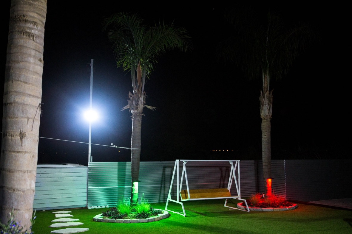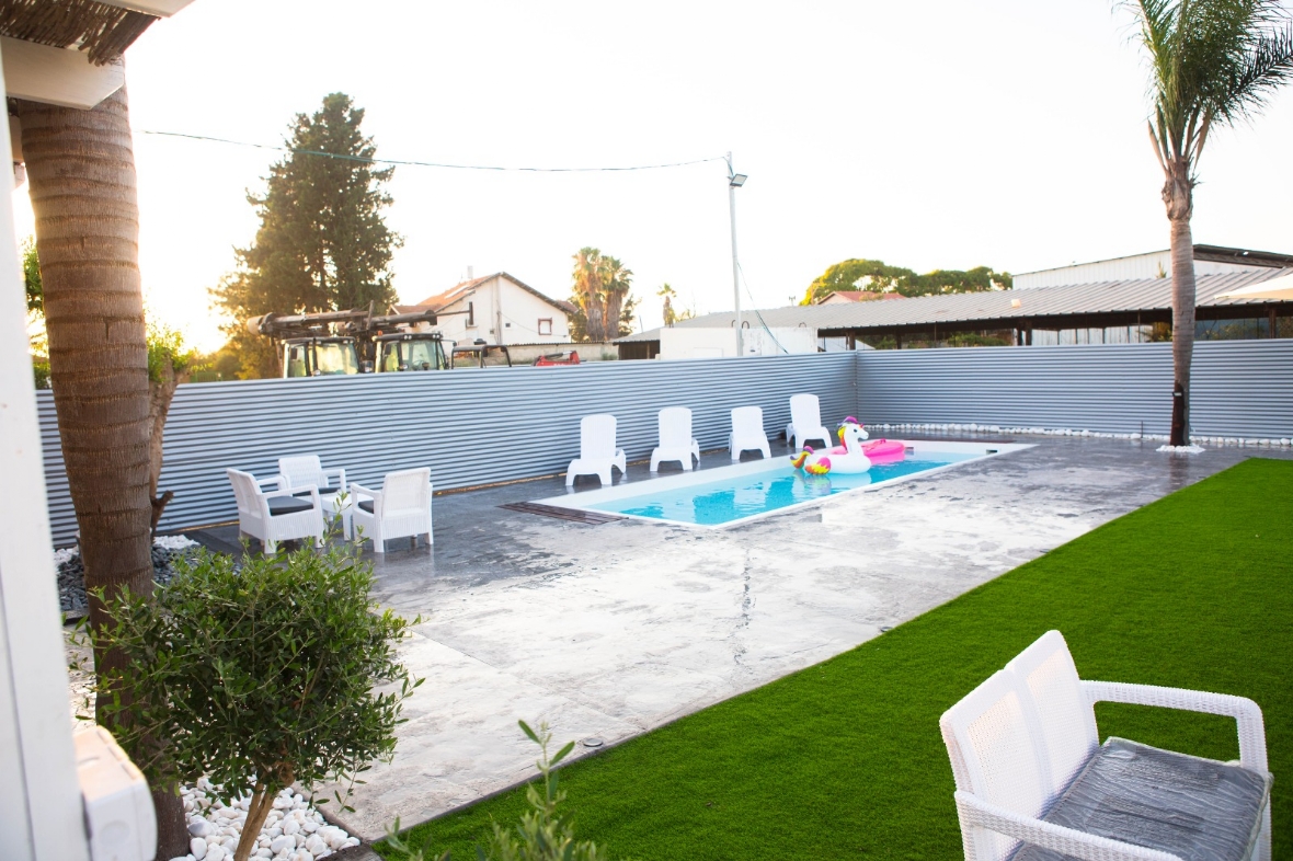מתחם החוץ של הווילה מותאם לעריכת אירועי בוטיק, מסיבות רווקות וערבי חברה. בלב חצר ענקית, ממוקמת בריכת שחייה מהממת, סביבה מיטות שיזוף ושולחנות בר, תאורה מרהיבה לעת ערב ופרטיות מלאה.